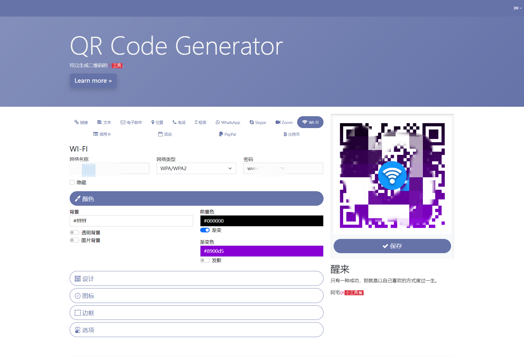 详情介绍 阿宅QR轻量二维码生成系统源码 基于PHP编写的二维码在线生成系统。只需点击几下就可以生成您的个人二维码!上传您的徽标,选择自定义颜色,生成多种类型。选择一个图案并下载最终的qrcode。可用格式:.png,.svg 评论解锁 当前隐藏内容需要评论才能查看 立即评论 已有0人评论查看此内容