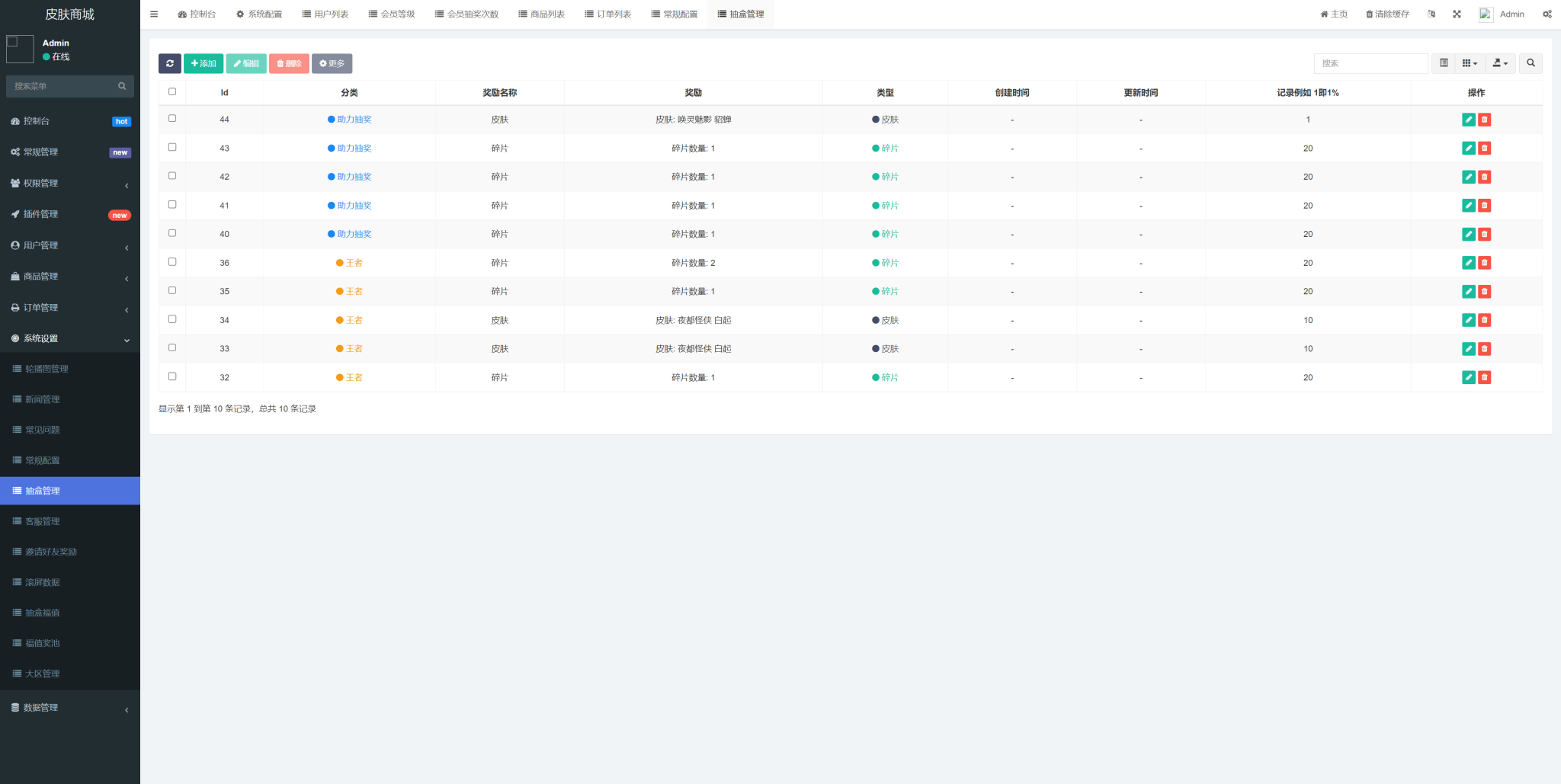 此源码为全新二开的,前端主打游戏皮肤抽奖模式