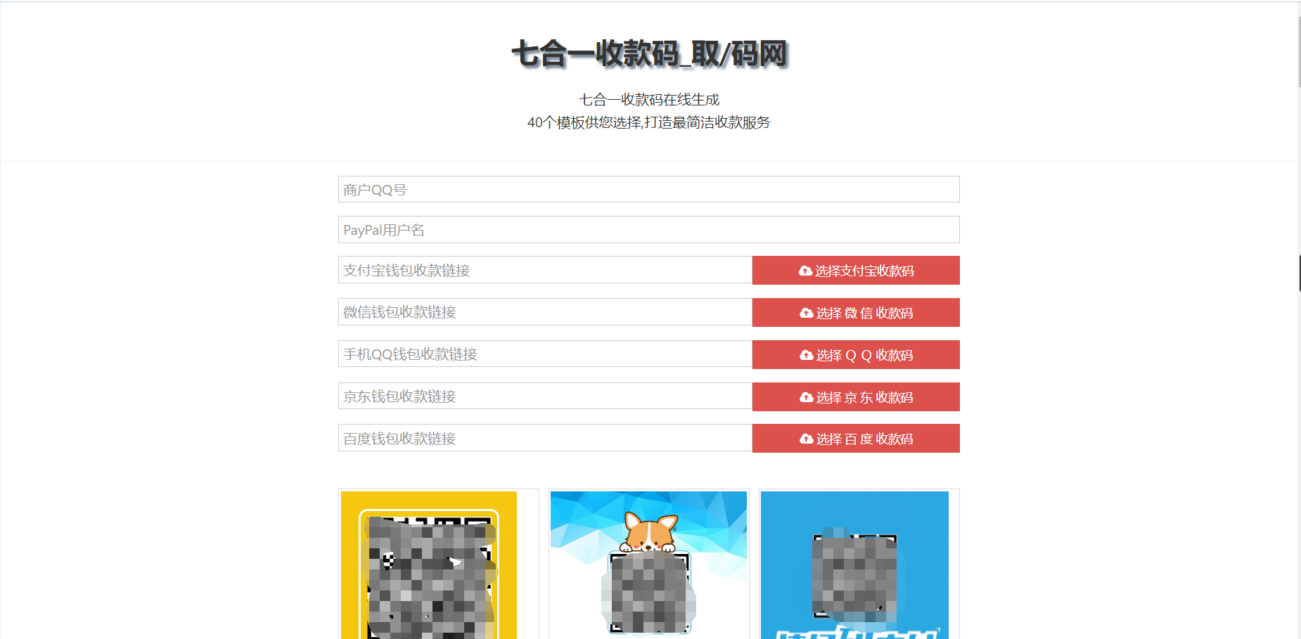 一个生成聚合收款码的系统,支持QQ商户、百度钱包、京东钱包、PAYPAL、QQ收款码、支付宝收款码、微信收款码,样式模板挺多的,感兴趣的可以自行下载学习研究